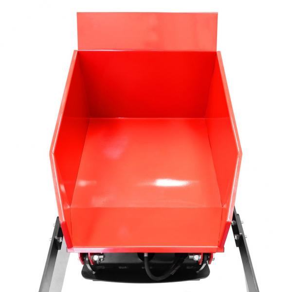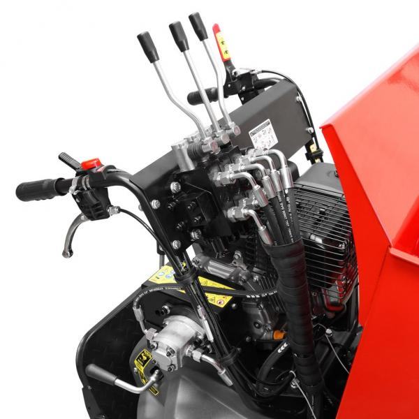 Gusjenični transporter s utovarivačem omogućuje vam prikupljanje i prijevoz rasutih materijala na kratkim udaljenostima. Stoga je izvrstan pomagač, na primjer, na gradilištima. Zahvaljujući gusjenicama, može se lako kretati čak i po neasfaltiranom terenu. Do pola tone materijala može se utovariti u nadgradnju dimenzija 950 x 680 x 465 mm i prevesti do mjesta gdje je potrebno brzinom do 5,1 km/h. Maksimalna težina materijala koji se može podići hidrauličnom žlicom je 200 kg. Operater ne mora hodati iza transportera, njime upravlja s platforme. Utovarivač i nadgradnja su hidraulički pogonjeni.